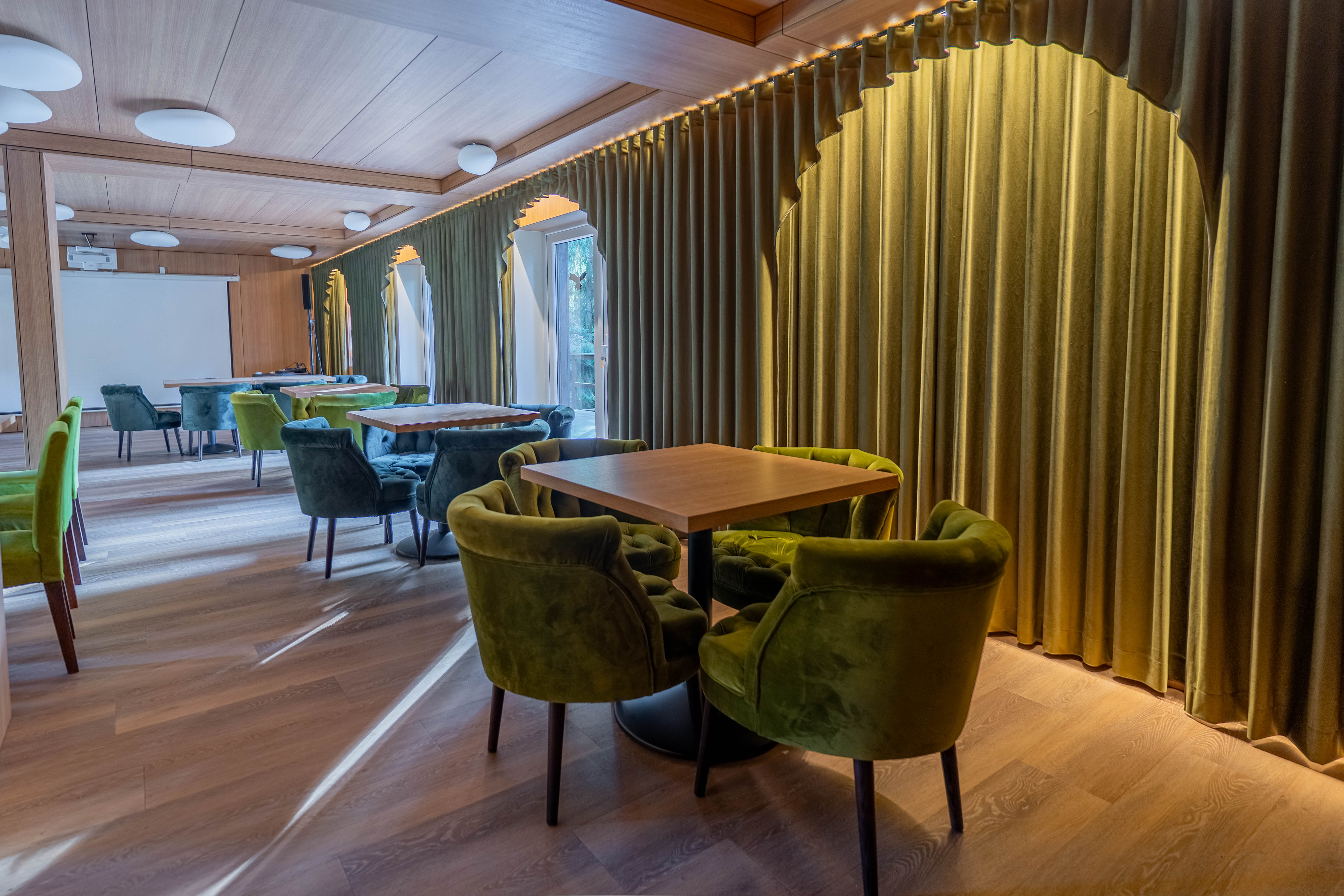 The conference hall is a flexible space that adapts to both formal and informal events. Do you want to organize a strategic meeting with your team, a creative workshop or a cozy company party? Everything is possible. Next to the hall is nature, which helps you concentrate, calms you down and inspires you. And after the event, you can enjoy a gourmet dinner or hang out at the bar. If desired, we will take care of everything from technical equipment to snacks or a full menu - all you have to do is bring your team, clients or guests.
